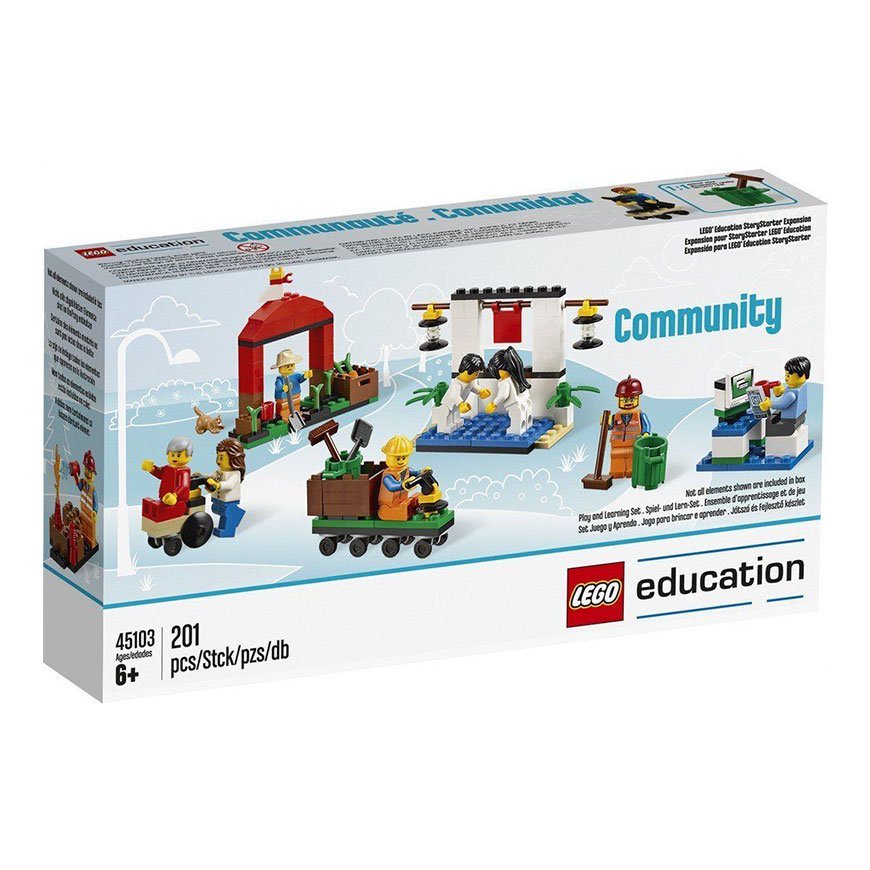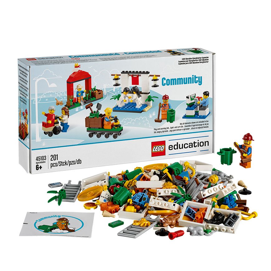 LEGO Story Starter Community Expansion set, Intended for use with the StoryStarter Core Set, this set encompasses all the benefits of the Core Set while broadening its use, encouraging pupils to explore a variety of social studies topics related to communities and their needs.